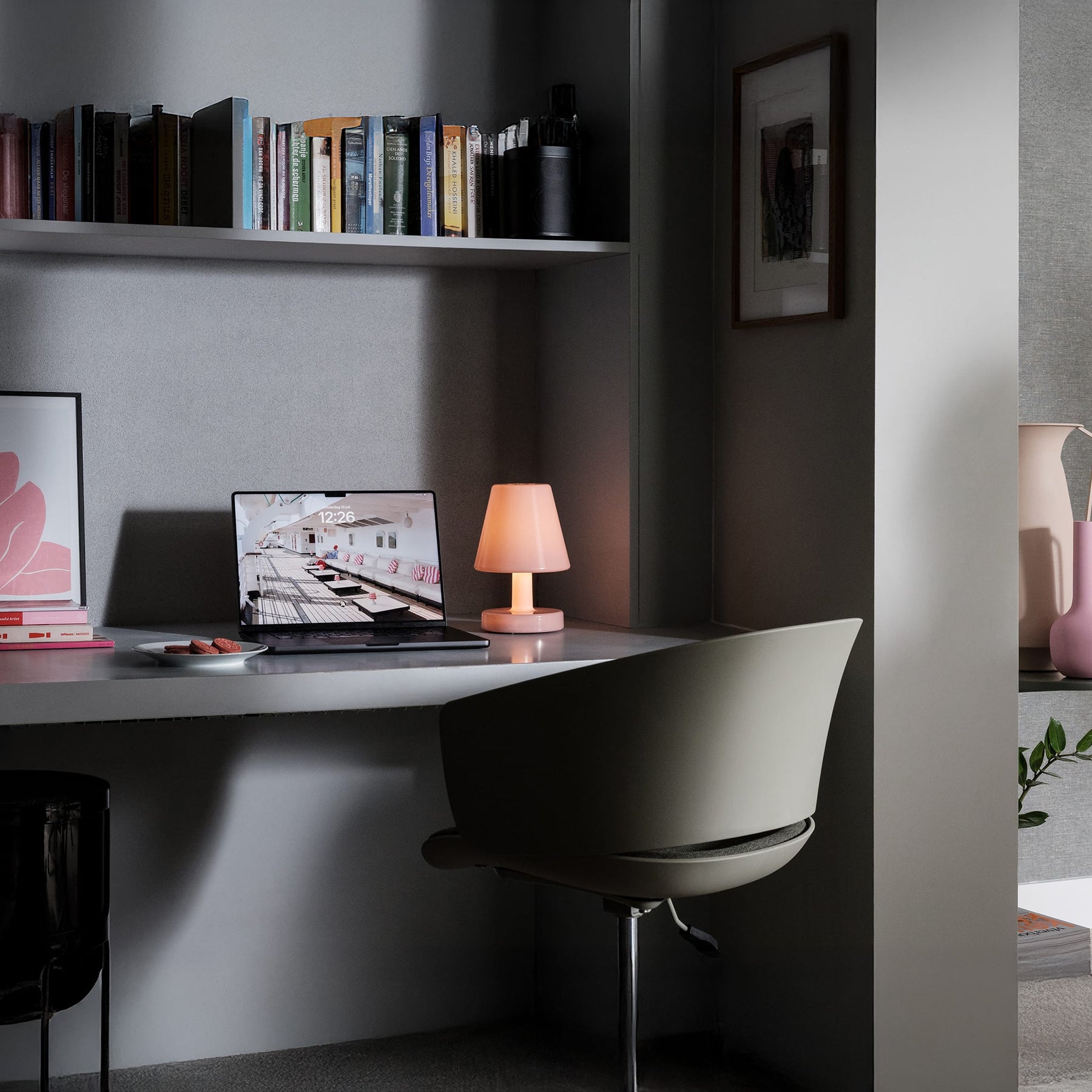 Edison the Ambiance in soft pink is a wireless table lamp designed to create instant cozy lighting.