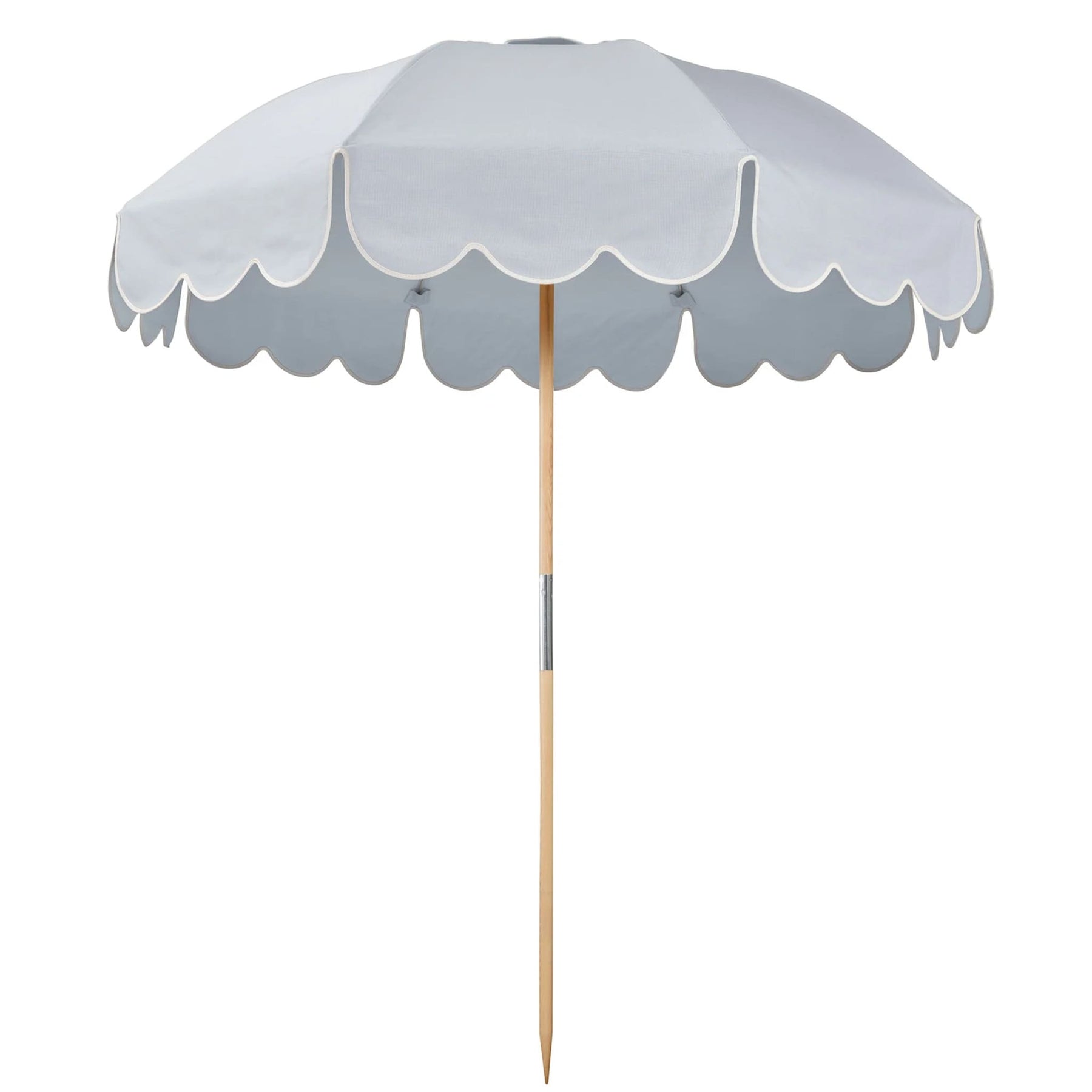 Elegant Jardin Patio Umbrella by Basil Bangs, featuring durable fabrics, UPF50+ sun protection, and a classic domed design.