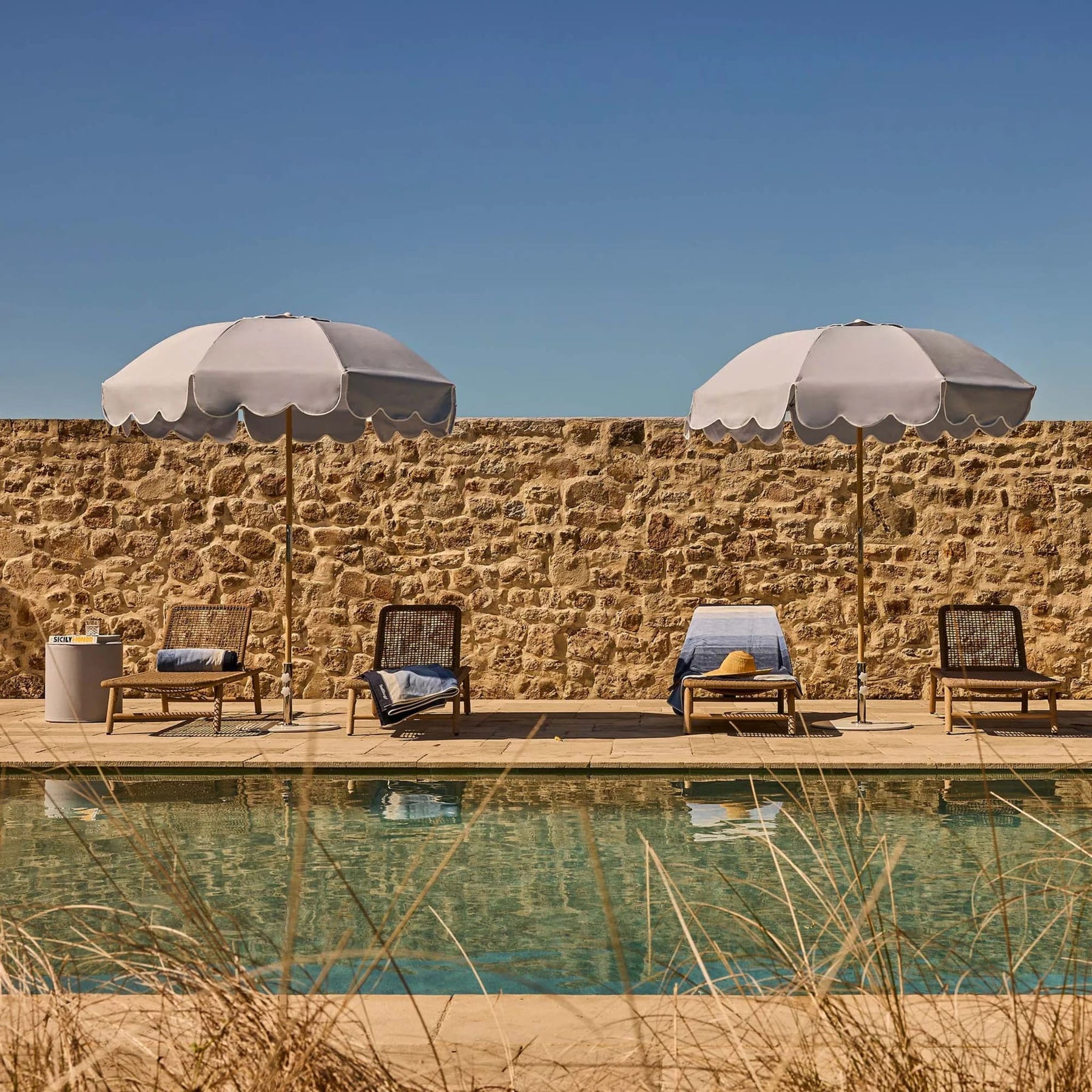 Basil Bangs introduces the Jardin 'Italian' Umbrella, a design inspired by the brand's commercial collection and refined for residential use. With its classic domed shape, elegant fringing, and generous 210 cm (7 ft) span, this umbrella adds a sophisticated touch to gardens, patios, and backyards. Reflecting Basil Bangs’ commitment to quality and distinctive style, the Jardin umbrella enhances any outdoor space with ease.